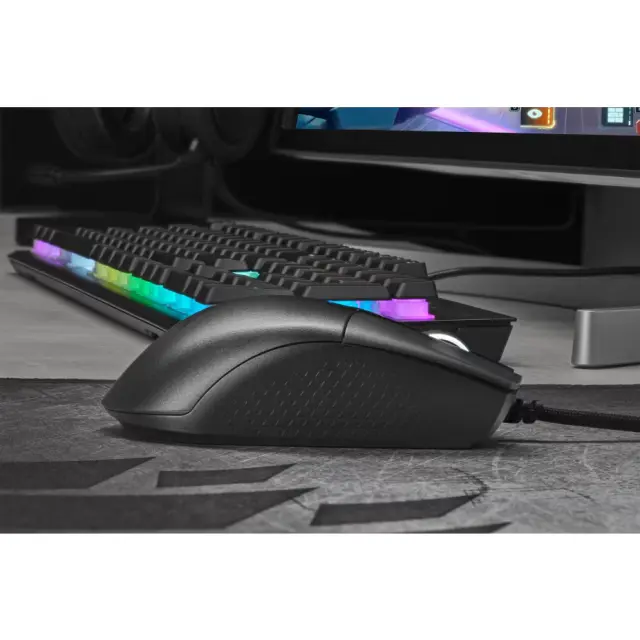 Na voljo je 6 programabilnih gumbov, ki jih lahko prilagodiš svojim potrebam. Preko programske opreme Corsair iCUE lahko nastavljaš makre, funkcije gumbov in osvetlitev ter tako popolnoma prilagodiš miško svojemu načinu igranja.