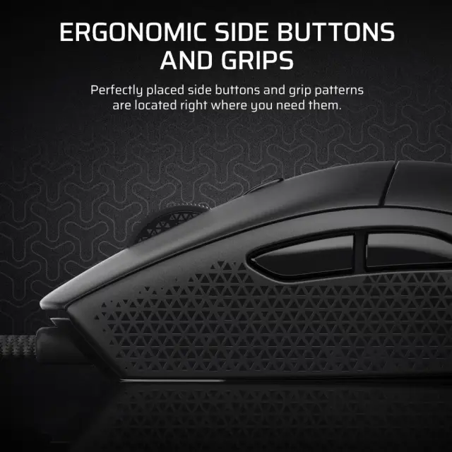 Corsair M55 RGB Pro ima ambidextrous (simetrično) zasnovo, ki omogoča uporabo tako levičarjem kot desničarjem. Primerna je za različne stile držanja – palm, claw ali fingertip – in nudi udobje pri daljšem igranju.