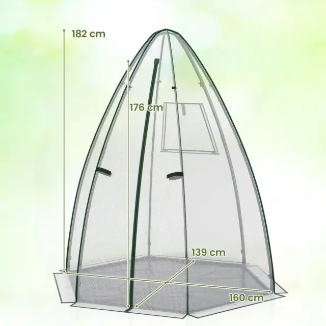 Robustna konstrukcija in enostavna sestava: Ta prenosni rastlinjak je izdelan iz nerjavnega, galvansko prevlečenega kovinskega okvirja, ki je trpežen v vseh letnih časih. Zahvaljujoč praktičnim priključkom in zavarovani koničasti strehi s krilno matico je sestavljanje otročje enostavno - orodje ni potrebno.