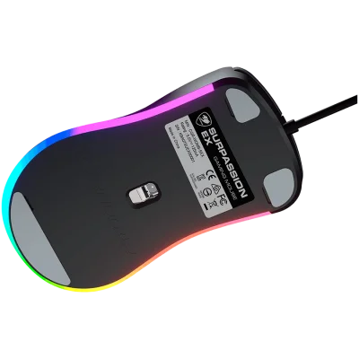 Surpassion EX je ergonomska in zmogljiva igralna miška s funkcijo bližnjice RGB osvetlitve. Idealen je za tiste, ki obožujejo RGB vibe in udobno igralno izkušnjo. Surpassion EX zasnovan tako, da nudi igralcem neprimerljivo zmogljivost v intenzivnem igranju, je narejen iz dobrega materiala in je opremljen s stikali z 20 milijoni klikov, ki prinašajo boljši občutek pri klikanju. Ne samo, da prinaša najnižji odzivni čas, ampak tudi zagotavlja vzdržljivost stikala. Vsaka komponenta je bila zasnovana za veliko vrednost in zagotovo izdelana, da traja. Z odličnim optičnim senzorjem PixArt PAW 3309 v notranjosti Surpassion EX zagotavlja natančno sledenje, ki zagotavlja zanesljivost visoke hitrosti pri 150 IPS, pospešek 30G in natančno natančnost do 6400 DPI s stopnjo anketiranja 1 ms. Igralci bi lahko uporabili njegovo natančno natančnost in naredili karkoli boljšega! Samo z uporabo Surpassion EX! Surpassion EX je lahko nastavil različne svetlobne učinke samo s COUGAR COMET RGB SHORTCUT v vgrajenem pomnilniku. Na voljo je 7 načinov osvetlitve, ki jih lahko izberete, poleg tega pa zagotavljajo globlje nastavitve, kot je sprememba barve pod vsakim načinom / svetlost barve / smer barv z bližnjicami za osvetlitev. Uporabniki so lahko enostavno zamenjali luč sami in brez namestitve programske opreme. Kako briljantna nastavitev svetlobe RGB iz Surpassion EX! Bolj gladke PTFE drsalke Surpassion EX ponujajo gladko drsenje brez napora z nizkim trenjem, zaradi česar je miška bolj odzivna in postane bolj okretna med igranjem. Ko pritisnete gumb DPI za spremembo ravni DPI, bo Surpassion EX na drsnem kolescu za 2 sekundi prikazal barvo vsakega DPI, nato pa se vrne na prvotne svetlobne učinke, ki jih je nastavil uporabnik. Tako uporabniki takoj izvejo raven DPI. To je res super!