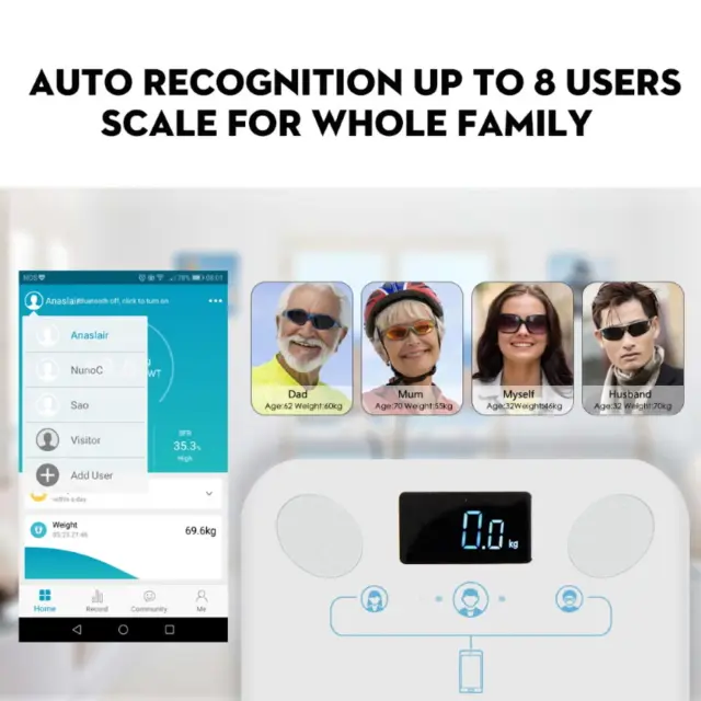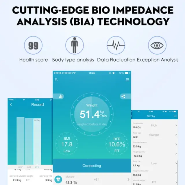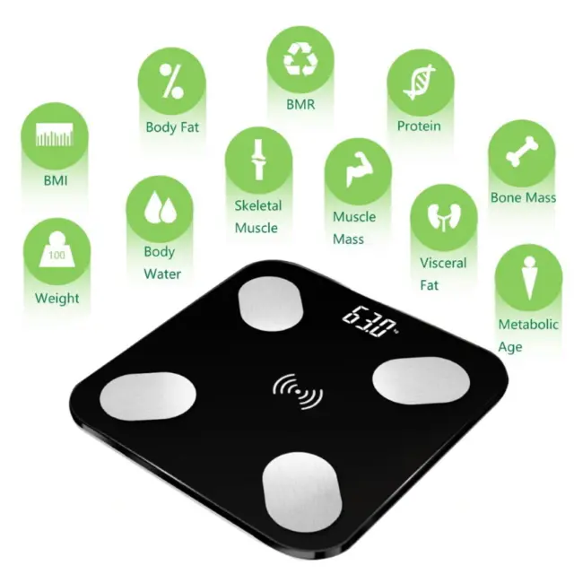 CP B2 Glass Bluetooth Smart Body tehtnica z aplikacijo Progress Synchronization za Android/iOS (0,1–180 kg) Črna
