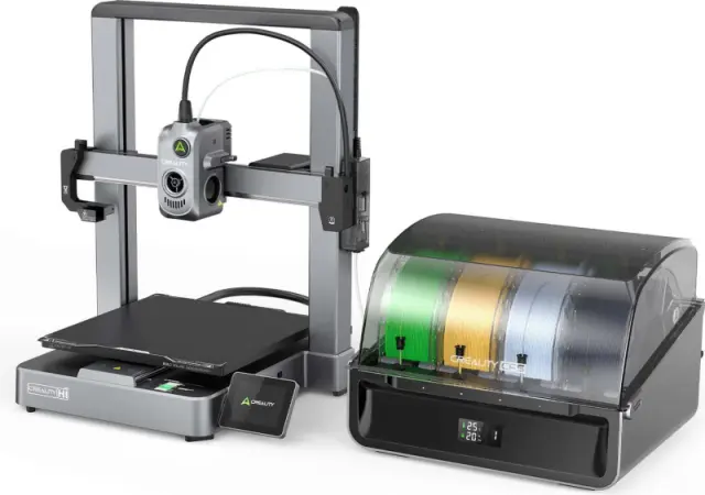 Hi Combo je pameten in modularen 3D tiskalnik, ki združuje Creality Hi printer z naprednim Creality Filament System (CFS) za enostavno večbarvno in multimaterialno tiskanje. Z gradnim volumnom 260 × 260 × 300 mm, hitrostjo do 500 mm/s, avtomatskim niveliranjem, RFID prepoznavanjem filamenta in tihim delovanjem (48 dB) je idealen za začetnike v profesionalnem tiskanju, makerspace, izobraževanje in manjša podjetja. 95% predmontiran in pripravljen v 8 minutah, podpira do 16 barv z razširitvijo in ponuja pametno upravljanje materialov brez odpadka.