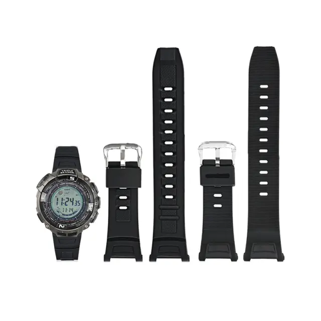 Popoln za ure Casio: Ta pas je zasnovan posebej za modele Casio PRG-130Y/PAW/PRW-1500 in ponuja brezšivno in varno prileganje. Njen črno-srebrni dizajn dopolnjuje robustno estetiko teh ur.