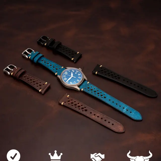 Vrhunsko usnjeno udobje: Izkusite neprimerljivo udobje s tem paščkom za uro, izdelanim iz visokokakovostnega, uvoženega mat usnja. Mehka tekstura se nežno prilega vaši zapestju in zagotavlja udobno prileganje skozi ves dan. Natančen postopek strojenja poudarja naravno zrno usnja, kar zagotavlja razkošen občutek in prefinjen videz. Uživajte v popolni kombinaciji sloga in udobja s tem izjemnim usnjenim paščkom za uro. Njegova zračnost preprečuje nabiranje znoja, zato je idealen za dolgotrajno nošenje.