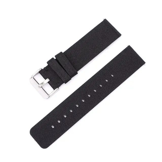 Črn pašček za uro iz platna s srebrno zaponko 22 mm