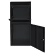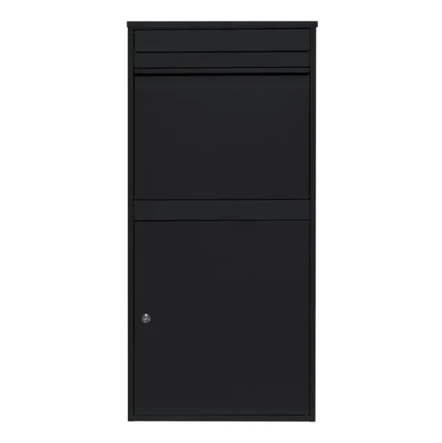 Ta varen poštni nabiralnik za pakete uporablja 1,1 mm debelo pocinkano jeklo za oblikovanje močne strukture in je prekrit s trpežnim praškastim premazom, ki daje osupljivo črno barvo, ki je izjemno odporna na vremenske vplive. Za izboljšanje vodoodpornih lastnosti ima škatla za spuščanje poševno streho, ki spodbuja odtekanje vode in tako ohranja vaš drog suh.