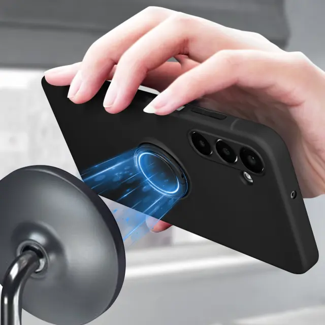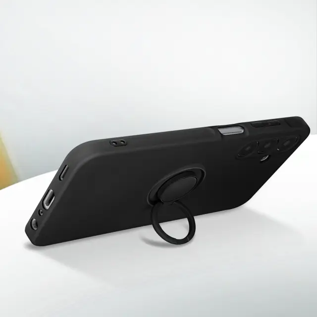 Črn silikonski ovitek z obročem za Samsung A25 5G - serija Flexyring, Črna