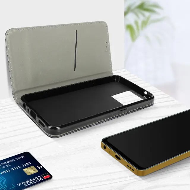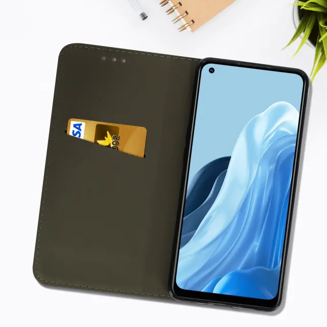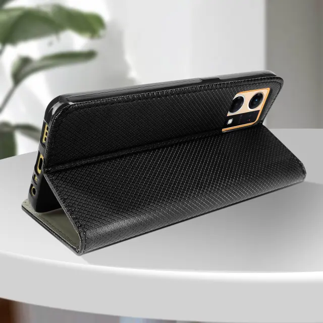 Crna denarnica Oppo Reno 7 z magnetnim preklopom in držalom za kartico