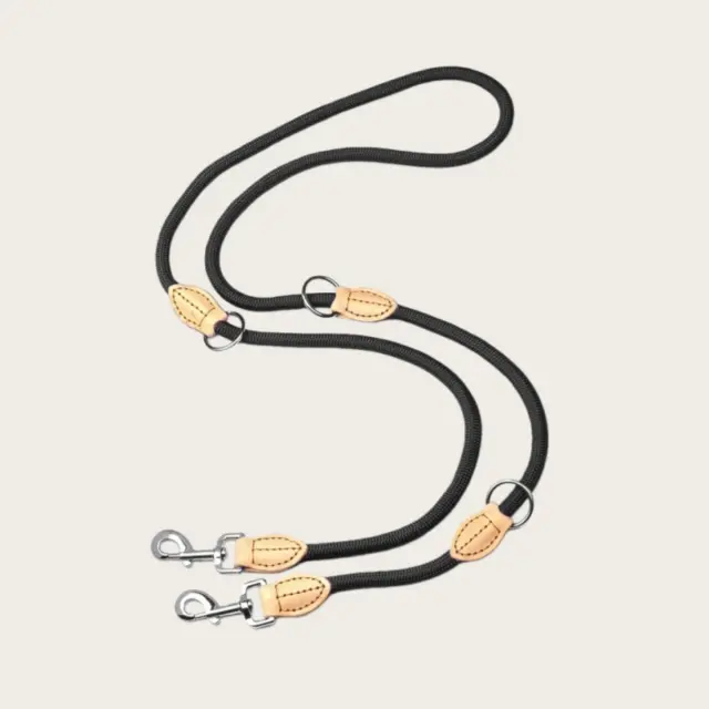 Močna najlonska konstrukcija: Izdelano iz visokokakovostnega najlona, ki zagotavlja močno in varno povezavo za vaše pse. Najlonski material zagotavlja zanesljivost tudi pri energičnih ali močnih psih, ki vlečejo. Dvojna pasja vrvica je narejena tako, da vzdrži vsakodnevno obrabo. Uživajte v miru, saj veste, da so vaši psi varno pritrjeni z vrvico, ki je hkrati močna in udobna za vas. Ta najlonska pasja vrvica je enostavna za čiščenje in vzdrževanje, kar zagotavlja, da bo ostala v vrhunskem stanju za številne prihodnje sprehode.