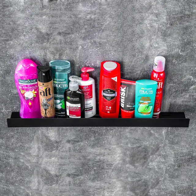Črna kopalniška polica, viseča kopalniška polica za kozmetiko za tuširanje