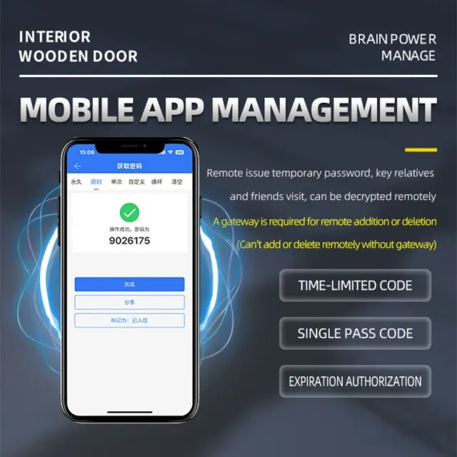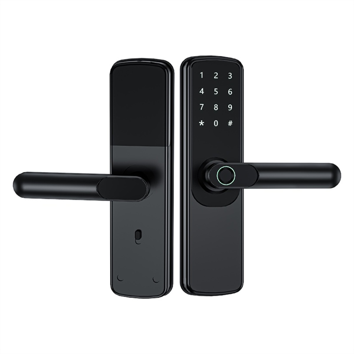 Črna Pametna Ključavnica za Vrata (APP+Geslo+Kartica+Ključ) Združljiva s Tuya