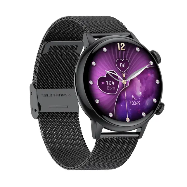 Črna pametna ura iz nerjavečega jekla z Bluetooth klicem in spremljanjem zdravja