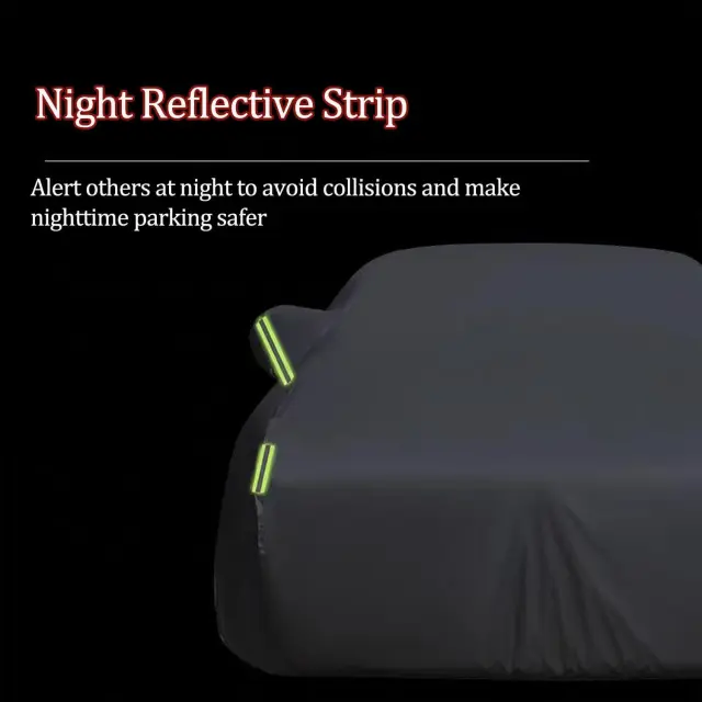 Trpežna tkanina Oxford: Ta prevleka za avto je izdelana iz vrhunske tkanine Oxford in je zasnovana za dolgotrajno delovanje. Robusten material je odporen na trganje, bledenje in poškodbe zaradi vode, kar zagotavlja, da je vaš avto vedno zaščiten pred vremenskimi vplivi. Zračnost tkanine preprečuje nabiranje vlage, kar zmanjšuje tveganje za nastanek plesni. Investirajte v prevleko, ki bo prestala preizkus časa in zagotavljala vrhunsko zaščito za vaše vozilo, sezono za sezono. Uživajte v zaupanju, da je vaš avto dobro zaščiten.
