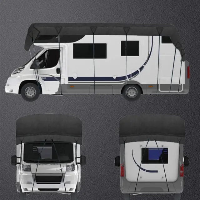 Vodoodporen in odporen proti prahu: Ta prevleka za avtodom je zasnovana tako, da zagotavlja idealno zaščito pred dežjem, snegom, prahom in drugimi okoljskimi dejavniki, ter ohranja vaš avtodom čist in suh.