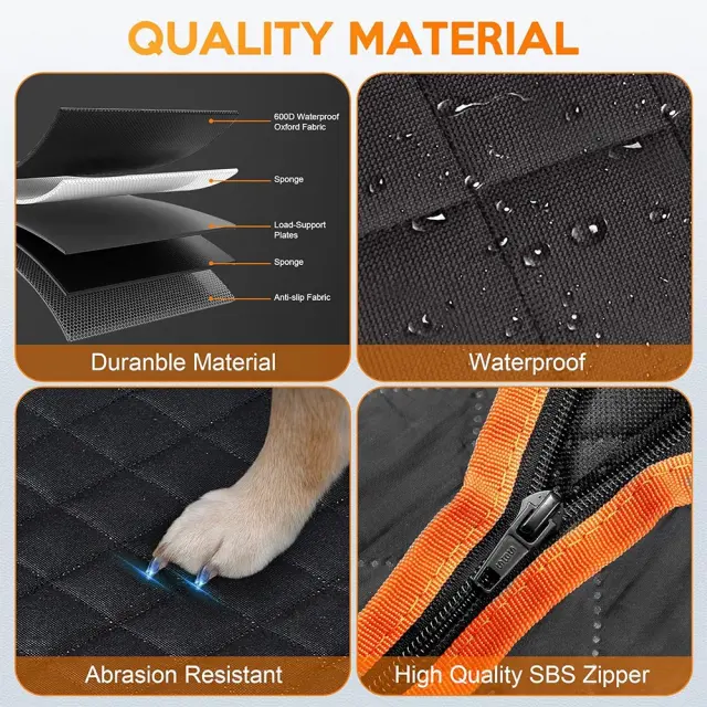 Comfortable Pet Travel: Prosimo, upoštevajte: to niso originalni deli. Zagotovite udoben in varen prostor za svojega hišnega ljubljenčka med vožnjo z avtomobilom s to oblazinjeno prevleko za sedež, ki ne drsi. Mehak material iz oksfordske tkanine ustvarja prijetno okolje, medtem ko nedrseča podloga preprečuje, da bi vaš hišni ljubljenček drsel med nenadnimi postanki ali zavoji. Ta prevleka je idealna za dolga potovanja ali kratke opravke, saj zagotavlja varnost in udobje vašega hišnega ljubljenčka skozi celotno potovanje. Dodatni stranski zavihki nudijo dodatno zaščito za vrata vašega avtomobila, preprečujejo praske in umazanijo, da bi dosegli notranjost. Poskrbite, da bo vsaka vožnja z avtomobilom prijetna izkušnja za vas in vašega ljubljenega hišnega ljubljenčka.