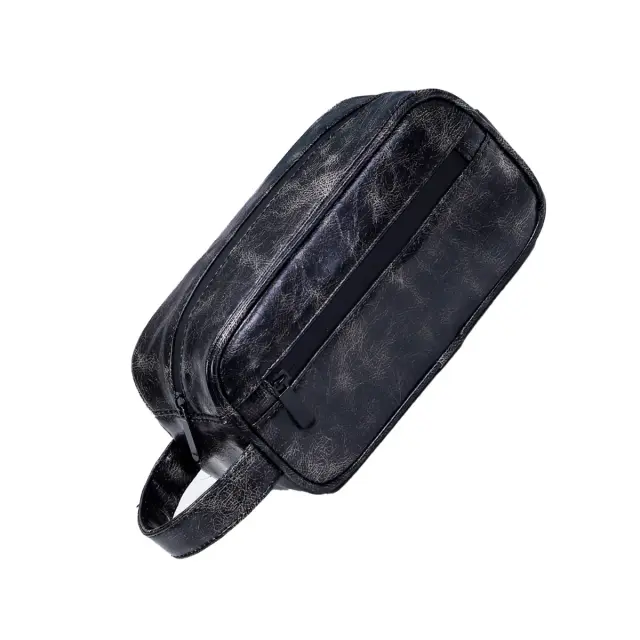Vodoodporna in odporna na razlitja: Izdelana iz visokokakovostnega PU usnja, ta črna toaletna torba nudi odlično zaščito pred vodo in razlitji. Njena vodoodporna zunanjost zagotavlja, da vaša toaletna oprema in drugi bistveni predmeti ostanejo varni in suhi, tudi v vlažnih kopalniških pogojih ali med nepričakovanimi potovalnimi nezgodami. Zasnova, odporna na razlitja, zagotavlja dodatno plast varnosti in preprečuje, da bi tekočine pronicale in povzročile škodo vaši lastnini. Popolna za potovanja, kampiranje, obiske telovadnice ali preprosto za organizacijo kopalnice.