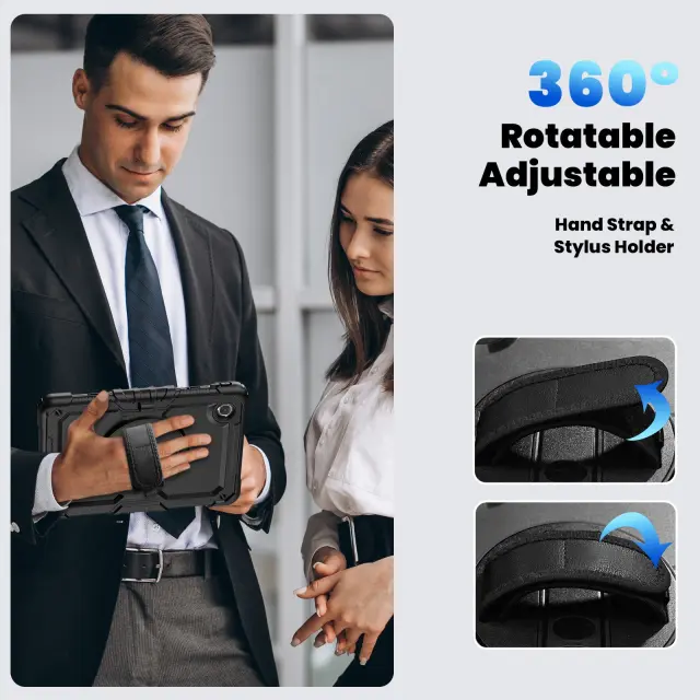 Integrirana funkcija stojala: Vgrajeno stojalo ponuja več kotov gledanja, zaradi česar je popolno za gledanje videoposnetkov, tipkanje ali video konference na vašem Lenovo Tab M8 HD 8-palčni (2019/2020/2022). Stojalo je robustno in zanesljivo ter zagotavlja stabilno podlago za vaš tablični računalnik na kateri koli ravni površini. Ne glede na to, ali delate od doma, potujete ali se preprosto sproščate, ta funkcija izboljša vašo izkušnjo s tabličnim računalnikom, saj vam omogoča udobno gledanje vsebine brez uporabe rok. Stojalo je brezhibno integrirano v zasnovo ohišja, ohranja eleganten in poenostavljen videz, hkrati pa dodaja pomembno funkcionalnost. Uživajte v udobju in vsestranskosti vgrajenega stojala, ki se prilagaja vašim potrebam in zagotavlja optimalne kote gledanja za katero koli nalogo ali dejavnost. Ta funkcija je še posebej koristna za uporabnike, ki pogosto uporabljajo svoj tablični računalnik za porabo medijev ali produktivnost.