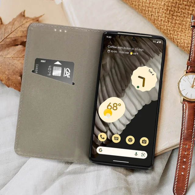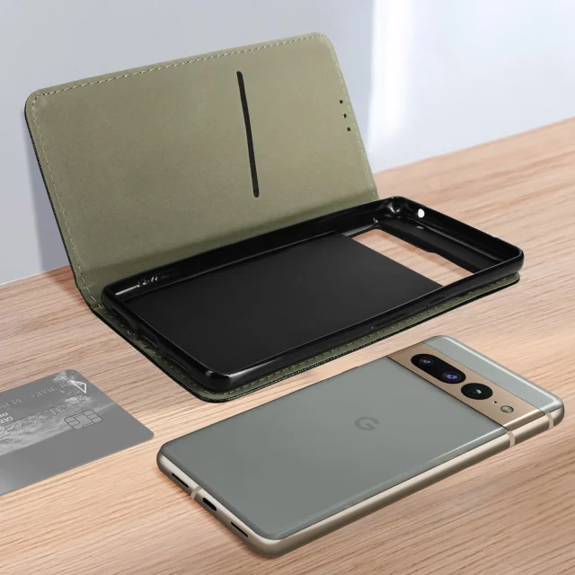 Crna torbica denarnica za Google Pixel 7 Pro z magnetnim preklopom in držalom za kartico