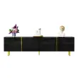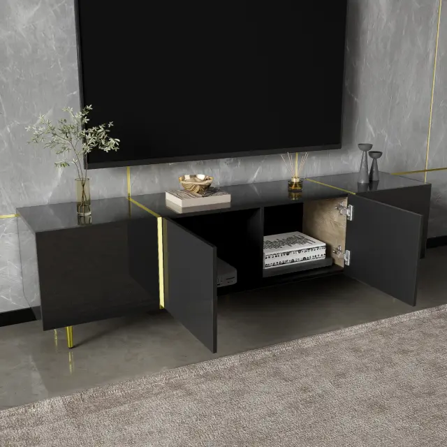 Črna TV omarica z visokim sijajem in 4 vrati (črna in zlata)