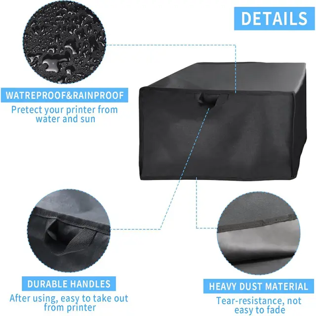 UV Zaščita: Prevleka za tiskalnik ima UV zaščito, ki preprečuje razbarvanje in poškodbe, ki jih povzroča dolgotrajna izpostavljenost sončni svetlobi. Ta funkcija je še posebej koristna za tiskalnike, ki se nahajajo v bližini oken ali na območjih z neposredno sončno svetlobo. UV odporen material ohranja črno barvo prevleke in preprečuje, da bi sčasoma zbledela ali razpokala. Z blokiranjem škodljivih UV žarkov prevleka pomaga tudi zaščititi plastične komponente tiskalnika pred tem, da bi postale krhke in nagnjene k poškodbam, kar zagotavlja dolgoročno zanesljivost.