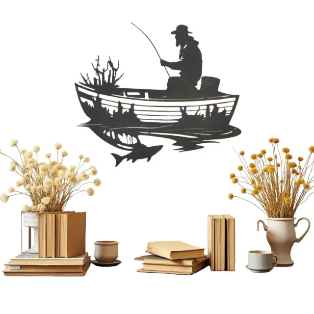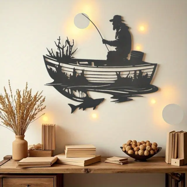 Edinstven dizajn ribolovnega čolna: Ta osupljiva kovinska stenska umetnina ima zapleteno oblikovan prizor ribolovnega čolna, ki zajema spokojnost ob jezerskem ribolovu. Umetnina doda pridih prefinjenosti in mirnosti vsakemu prostoru, zaradi česar je popolna osrednja točka za vašo dnevno sobo, spalnico ali pisarniški prostor. Podrobna silhueta ustvarja vizualno privlačen kontrast s katero koli barvo stene in takoj izboljša vašo notranjo opremo z umetniškim pridihom. Predstavljajte si, da uživate v pomirjujoči prisotnosti jezerskega ribolova v udobju svojega doma.