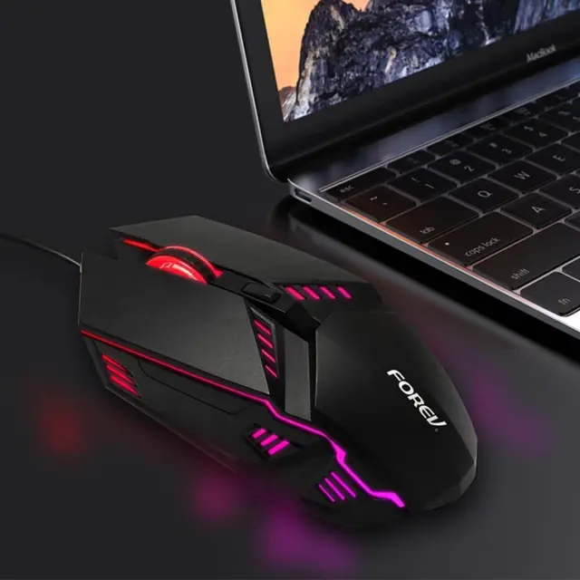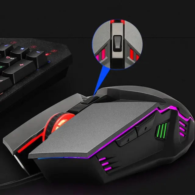 Črna žična igralna miška z RGB osvetlitvijo, 1600 DPI, 6 gumbov, združljiva z računalnikom