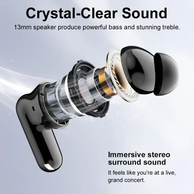 Brezžična tehnologija 5.3: Izkoristite najnovejšo tehnologijo Bluetooth 5.3, ki ponuja stabilno in zanesljivo povezavo z dosegom do 10 metrov. Izkusite hitrejše seznanjanje, izboljšano energetsko učinkovitost in izboljšano kakovost zvoka v primerjavi s starejšimi različicami Bluetooth. Napredni čip JIELI6983D2 zagotavlja brezhibno povezljivost z vašimi napravami in zagotavlja brezskrbno izkušnjo poslušanja. Uživajte v svobodi brezžičnega zvoka s temi vrhunskimi slušalkami, ki so popolne za vsako situacijo.