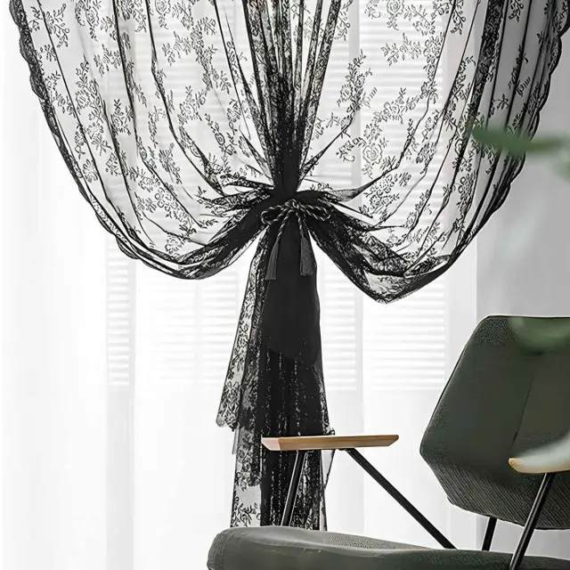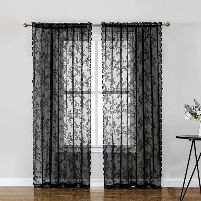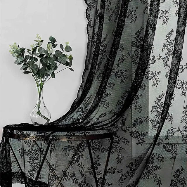 Črne čipkaste zavese 2 kosa Black