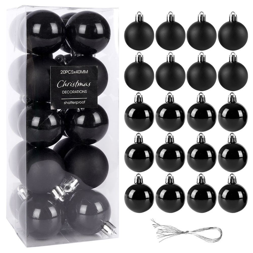 Črne nelomljive kroglice za božično drevo 4 cm 20 kosov.