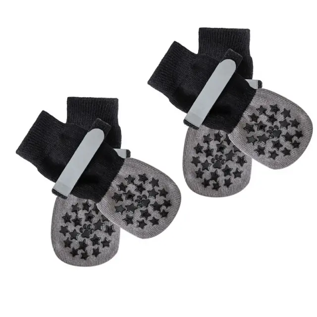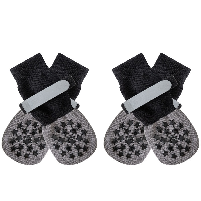 Črne zvezdaste pasje nogavice z dvojnim protizdrsom, 4 kosi XL