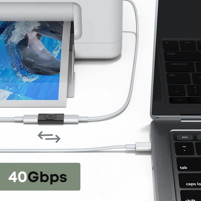 Crni podaljšek USB C, 240 W, hitro polnjenje, 40 Gbps, prenos, locljivost 8K. Uživajte v vsestranski uporabi s tem adapterjem za podaljšek USB C v USB C. Omogoca hitro polnjenje do 240 W, prenos podatkov do 40 Gbps in video prenos 8K. Plug-and-play namestitev. Kompaktna oblika.