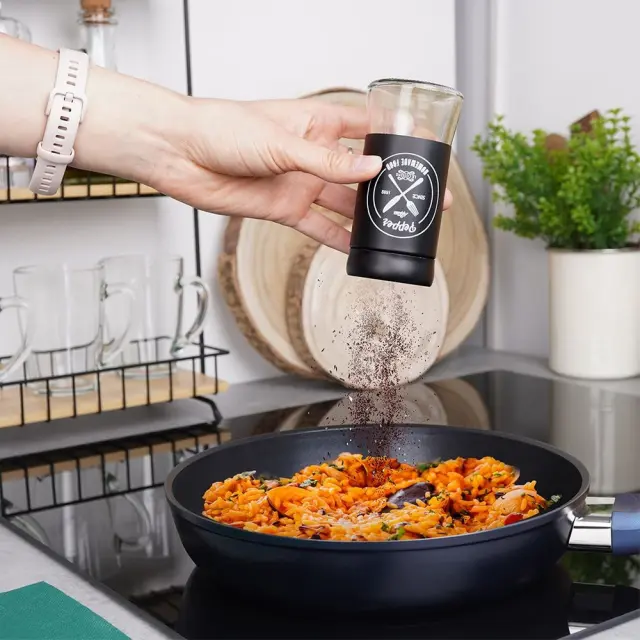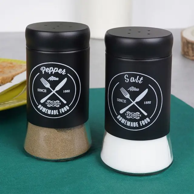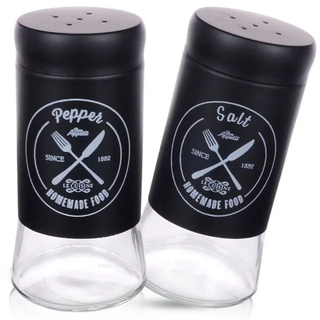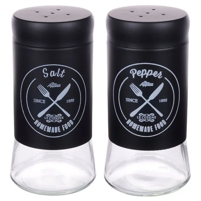 Črni stekleni solnik in poprovnik, 2 kosa.