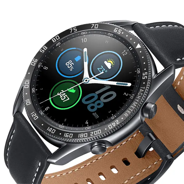 Izboljšana zaščita ure: Zaščitite svojo uro Samsung Galaxy Watch 3 (45 mm) s tem elegantnim obrobjem. Izdelano iz visokokakovostnega nerjavečega jekla, zagotavlja robustno plast zaščite pred praskami, udarci in vsakodnevno obrabo. Natančna zasnova zagotavlja brezhibno prileganje, ohranja elegantno estetiko vaše pametne ure in hkrati dodaja dodatno raven varnosti. Uživajte v miru, saj veste, da je vaša dragocena naprava dobro zaščitena.
