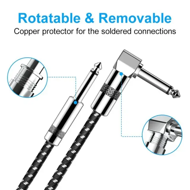 Črno-bela pletena žica, kotni do ravni bas kitarski kabel 10FT 5M