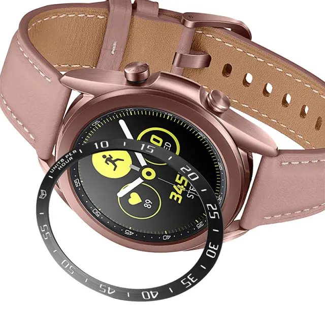 Izboljšana zaščita ure: Ta okvir iz nerjavečega jekla nudi robustno plast zaščite pred vsakodnevno obrabo, ščiti zaslon vaše ure Samsung Galaxy Watch 3 pred praskami, udarci in nenamernimi udarci. Njegova natančna izdelava zagotavlja brezhibno prileganje, ohranja eleganten profil ure in zagotavlja ključno zaščito. Dvignjeni robovi okvirja delujejo kot blažilnik, ki zmanjšuje neposreden stik med zaslonom in potencialno škodljivimi površinami, s čimer podaljšuje življenjsko dobo vaše dragocene pametne ure.