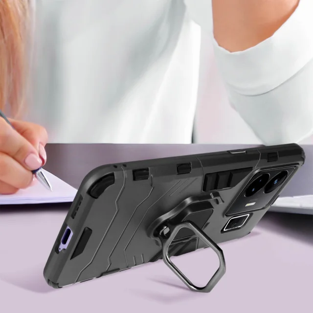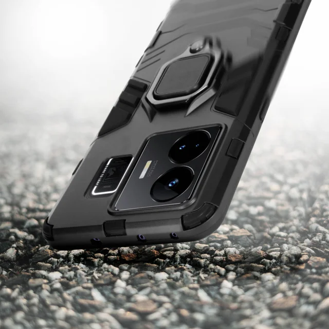 Crno hibridno ohišje s kovinskim obrocem za Realme GT3.