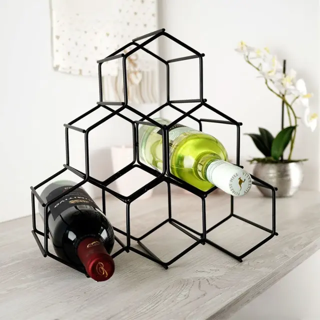 Črno kovinsko stojalo za vino za 6 steklenic 29,5 x 28,5 cm