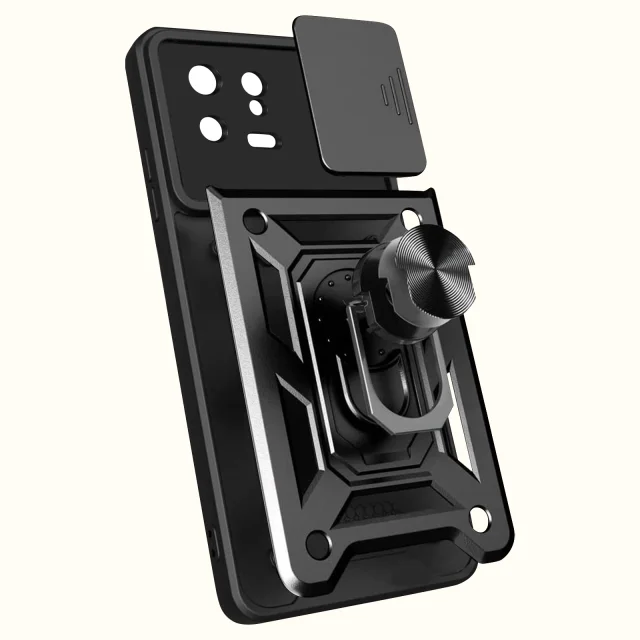 Crno ohišje s pokrovom kamere, stojalom s kovinskim obrocem za Xiaomi 13