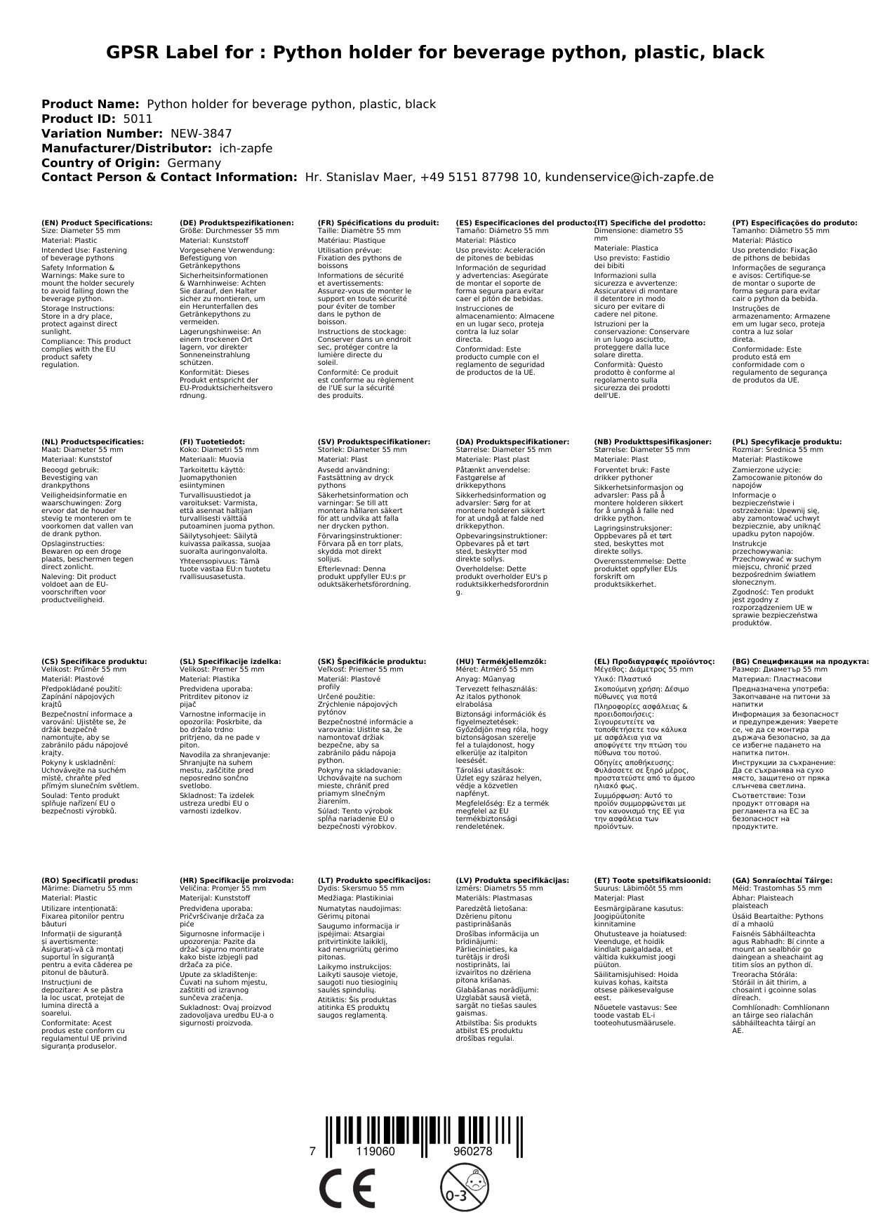 Črno plastično držalo za pijačo Python je profesionalna rešitev za varno in privlačno predstavitev vašega pijačo Python v bari ali gastronomiji. Z nastavljivim premerom od 55 do 85 mm se prilagaja različnim velikostim in zagotavlja popolno stabilnost.