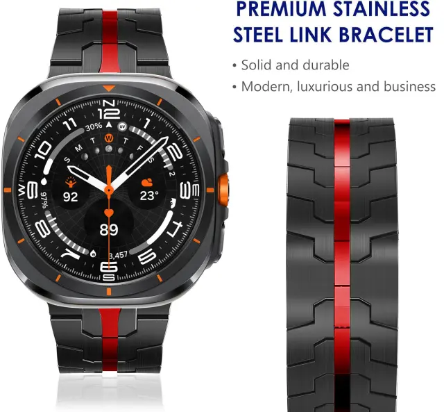 Eleganten dvobarvni dizajn: Izboljšajte videz svoje ure Samsung Watch 7 Ultra s tem elegantnim črno-rdečim paščkom za uro. Dvobarvna barvna shema doda pridih prefinjenosti in se dopolnjuje z različnimi stili, zaradi česar je popolna tako za priložnostne kot tudi za formalne priložnosti.