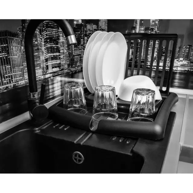 Črno stojalo za sušenje posode 43,5 x 38,5 x 27 cm