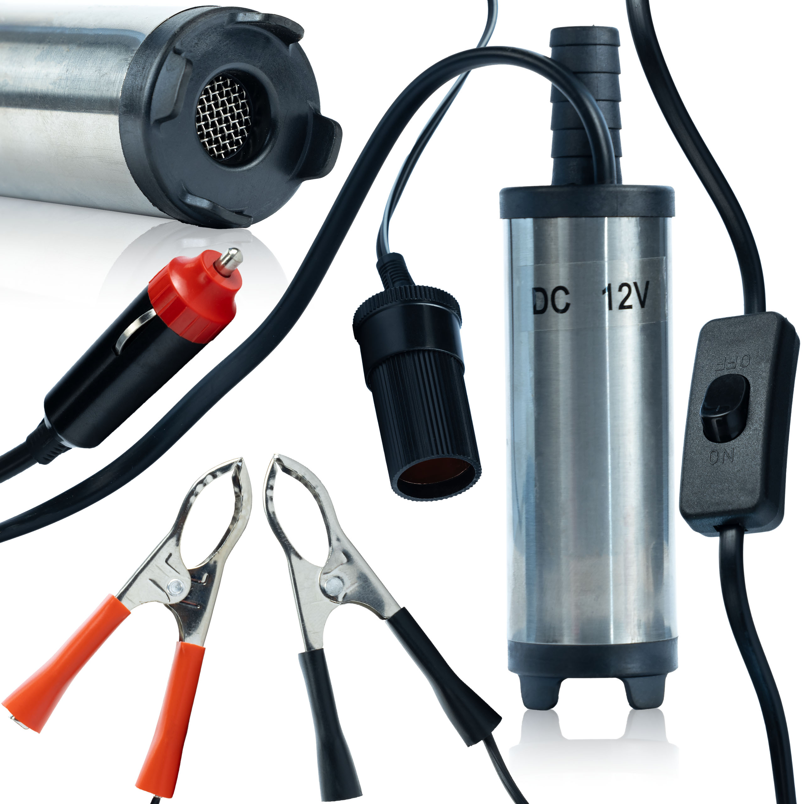 Rosfix Črpalka za Gorivo 12V – Inox Ohišje, 12 L/min, 38 mm, 2,6 m Kabel, 8500/min | Za Olje in Vodo