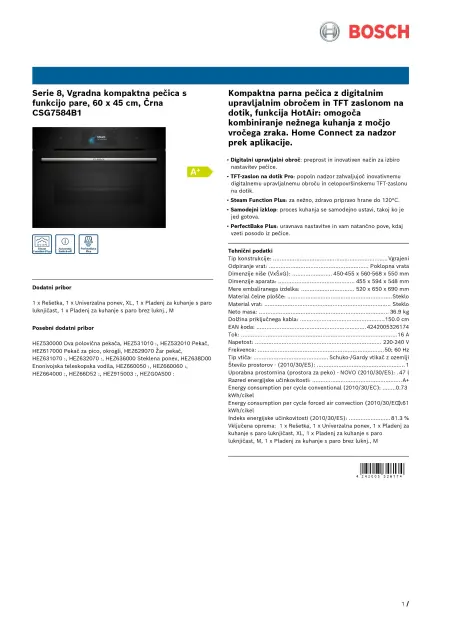 BOSCH CSG7584B1 Vgradna komp. pečica