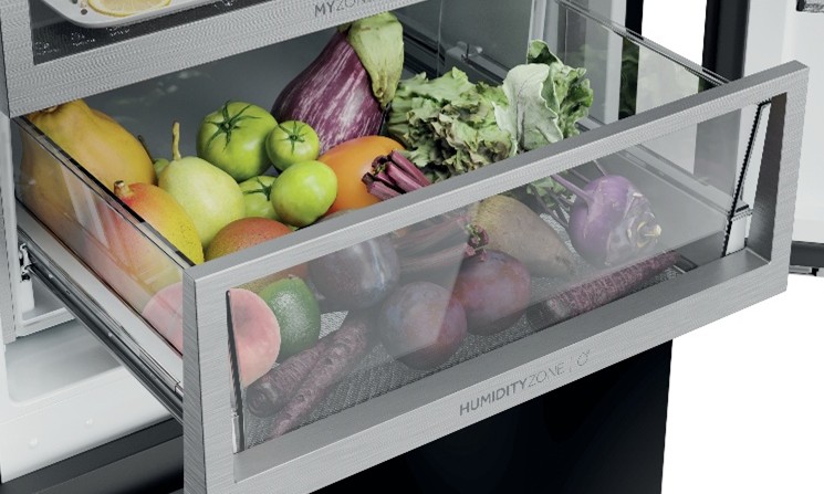 Predal Humidity Zone ohranja svežino vašega sadja in zelenjave dvakrat dlje*. To omogoča tehnologija HCS (Humidity Control System - sistem za nadzor vlage), membrana iz rastlinskih vlaken, ki lahko vzdržuje 90-odstotno vlago in samodejno uravnava pravilno vlažnost ter tako prepreči nastanek vodnih kapljic iz kondenza. *v skladu z VDE N ° ID.40046454