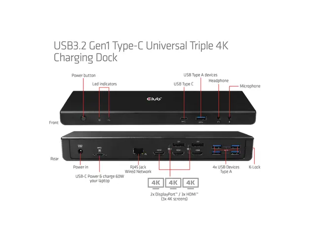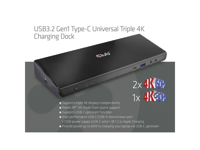 Club 3D 14 v 1 CSV-1562, USB-C 3.2 Gen1, Univerzalni Triple 4K, napajanje Priključna postaja