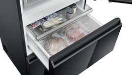 Edinstvena zasnova združuje vinsko vitrino v zgornjem delu in zamrzovalnik v spodnjem delu. Zamrzovalni predali z neposrednim dostopom vam omogočajo hiter in enostaven dostop, izboljšajo pregled nad živili in zmanjšajo izgubo energije do 30 %*. *Potrjeno s strani VDE N°ID.400048641.
