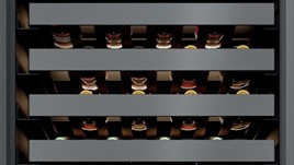 Pametna ambientalna osvetlitev se samodejno vklopi, ko se približate vitrini in z nežno svetlobo poudari vašo vinsko zbirko v vsej njeni eleganci.