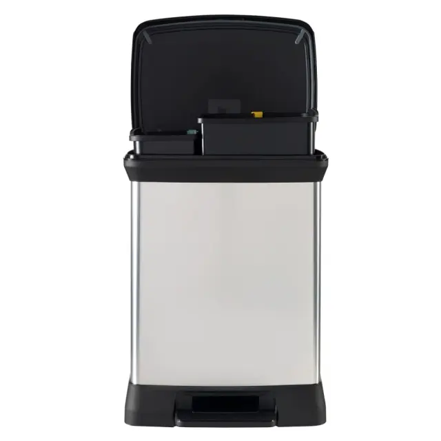 Ta koš s pedalom Deco duo znamke Curver je edinstveno oblikovan izdelek med koši za smeti. Opremljen je z dvema različnima notranjima vedroma s prostornino 10 L in 18 L, tako da je ločevanje odpadkov zelo enostavno.