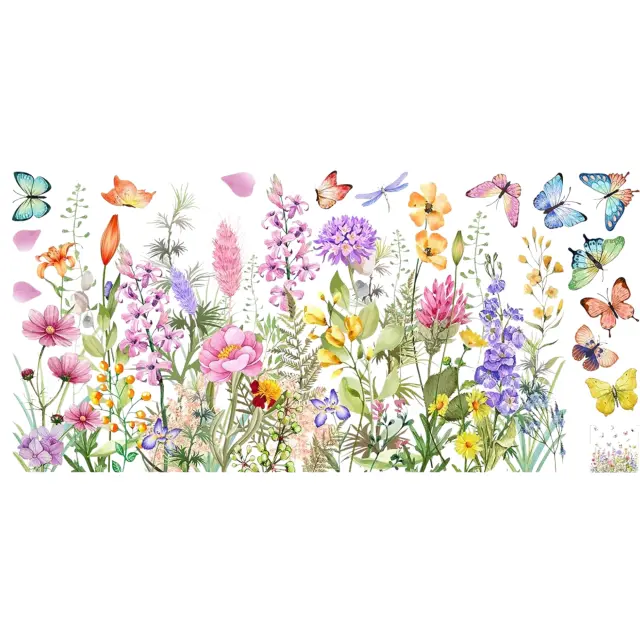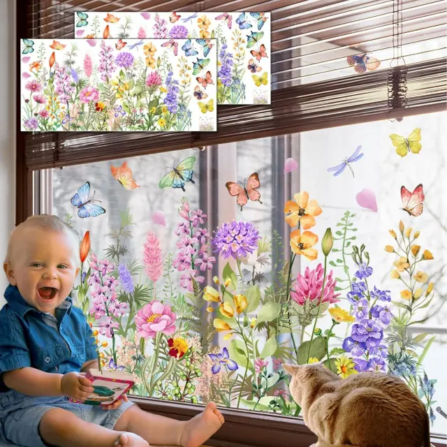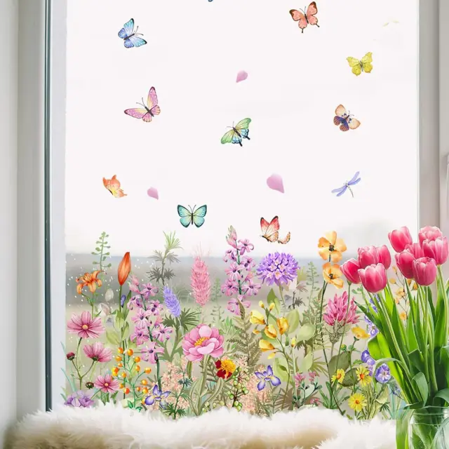 Cvetlična nalepka za okno, dvostranski tisk, odstranljiva dekoracija | FLORASTIK Cvetovi in metulji