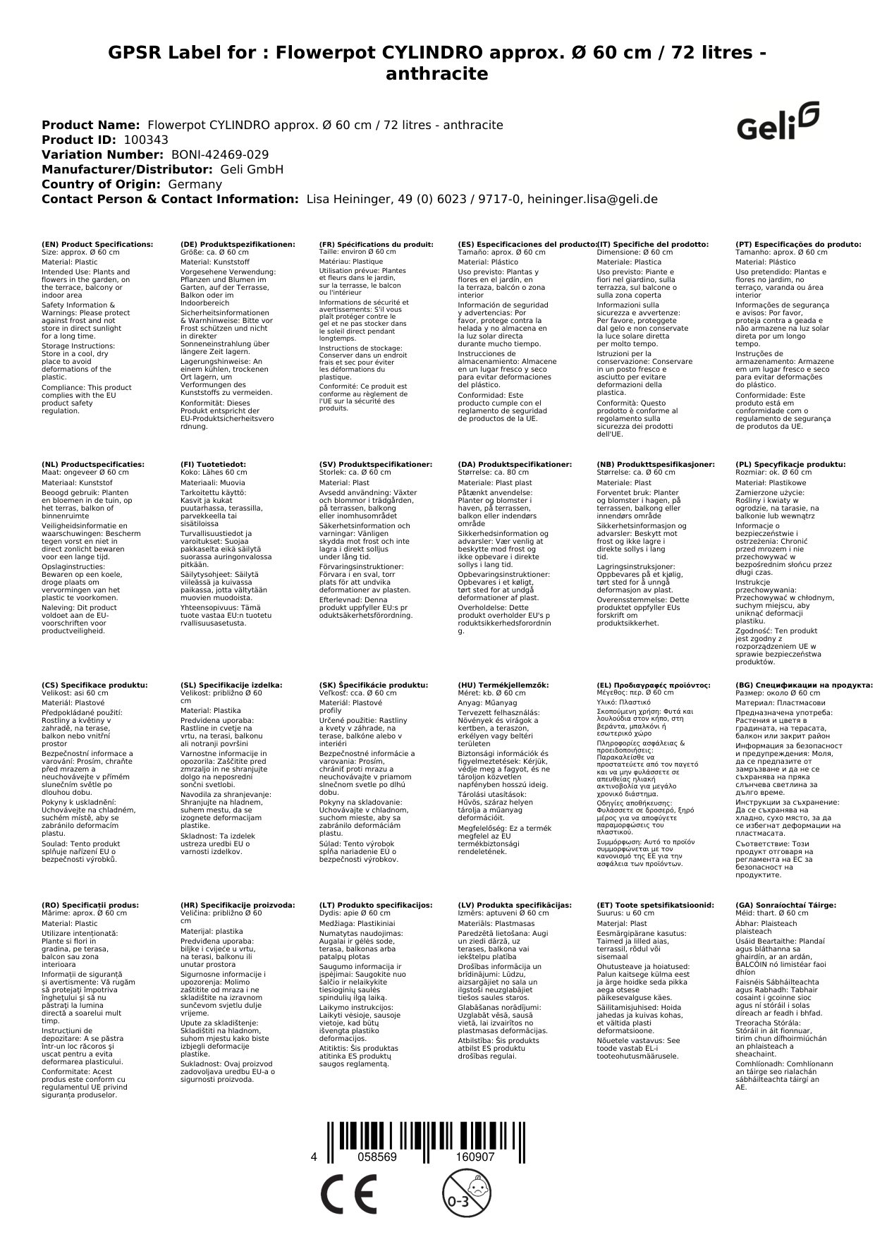 Cvetlični lonec CYLINDRO 60 cm, 72L, UV-odporen plastični lonec